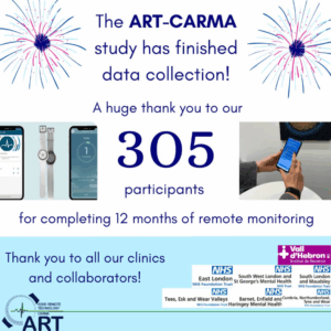 On 18th December 2025, the last ART-CARMA participant completed their 12-month remote monitoring period. Each of the 305 adults with ADHD, recruited by the study teams at King’s College London (KCL) in the UK and Vall d’Hebron Institute of Research (VHIR) in Spain, contributed both passive and active remote monitoring data that were collected using smartphones and the wearable device EmbracePlus.